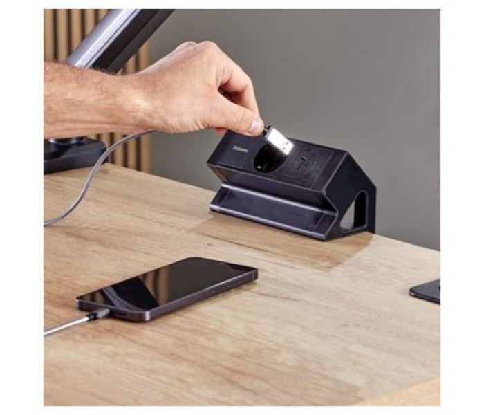 - Carga tus dispositivos sin esfuerzo y mantén tu espacio de trabajo limpio y ordenado con este módulo de alimentación de sobremesa de fácil acceso.