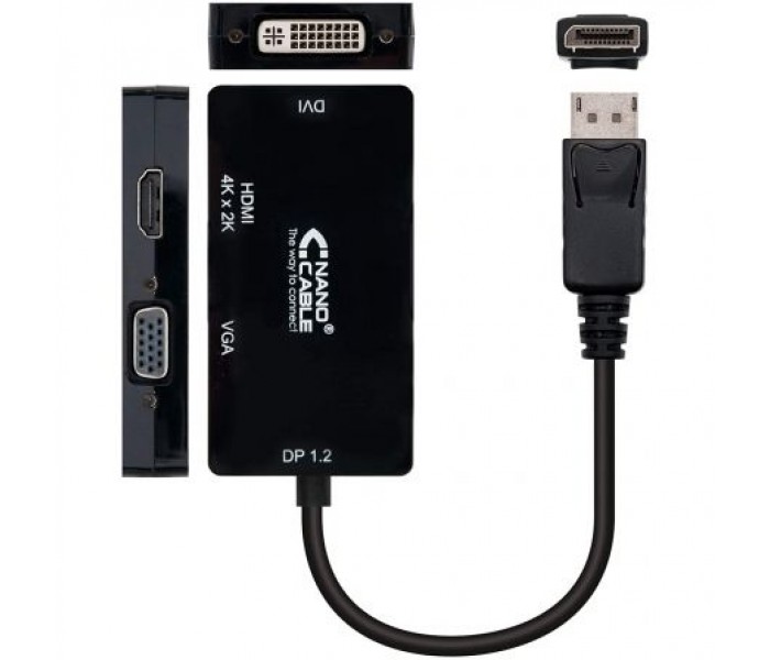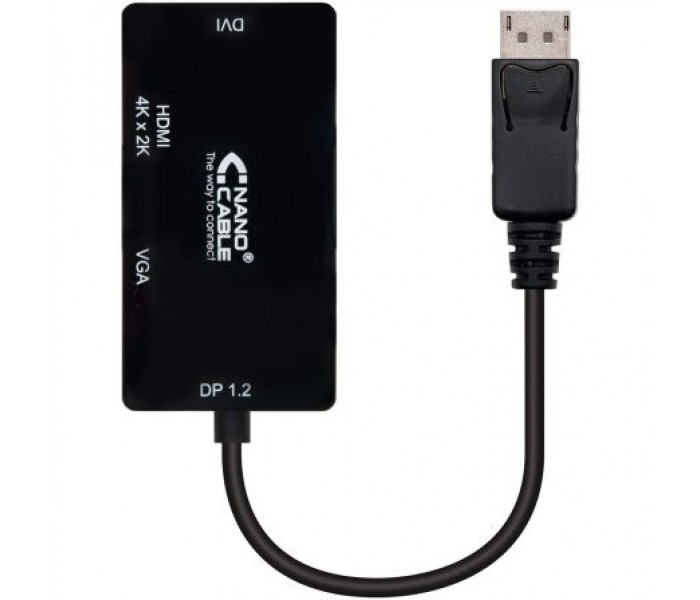 Cable Conversor Nanocable 10.16.3301-BK/ Displayport Macho - VGA Hembra/ DVI Hembra/ HDMI Hembra/ 15cm/ Negro
