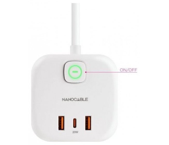 Base de 3 enchufes con 3 USB (2 USB-A + 1 USB-C), GaN + PPS, PD 20W, con interruptor, Blanco