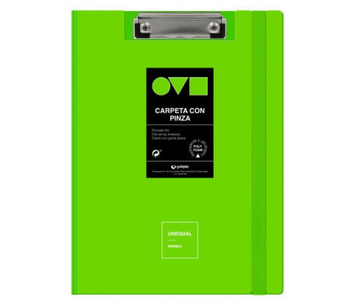 CARPETA A4 TAPA POLYFOAM CON PINZA SUPERIOR UNEQUAL MINIMAL VERDE GRAFOPLAS 1550921 (Espera 4 dias)