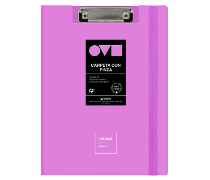 CARPETA A4 TAPA POLYFOAM CON PINZA SUPERIOR UNEQUAL MINIMAL LAVANDA GRAFOPLAS 1550969 (Espera 4 dias)