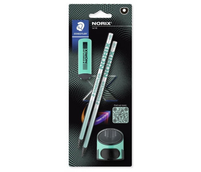 BLISTER CON 2 LÁPICES DE GRAFITO NORIX HB, AFILALÁPICES Y GOMA TURQUESA STAEDTLER 181 SBK2-3 (Espera 4 dias)