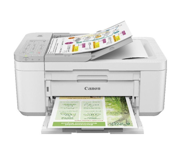 La Canon PIXMA TR4756i es una impresora multifunción 4 en 1 que combina impresión, copia, escaneo y fax en un diseño compacto y elegante, ideal para oficinas en casa. Ofrece conectividad Wi-Fi y es compatible con aplicaciones móviles como Canon PRINT, Apple AirPrint y Mopria, permitiendo imprimir desde smartphones y tablets sin necesidad de cables. Su pantalla LCD monocroma y funciones como la impresión automática a doble cara y el alimentador automático de documentos (ADF) de 20 hojas facilitan su uso diario.