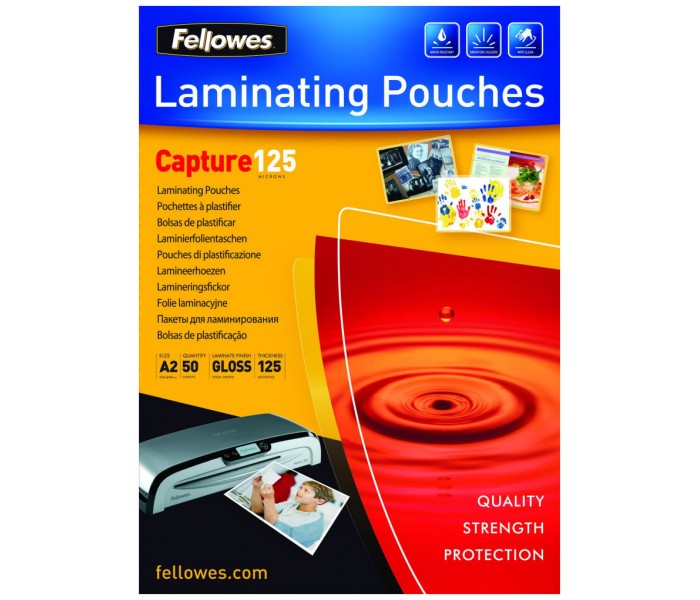 - Fundas de plastificar Capture 125 micras, proporcionan un excelente acabado de calidad en el plastificado- Acabado en brillo, tamaño A2- Disponible en paquetes de 50- Compatibles con todas las plastificadoras del mercado
