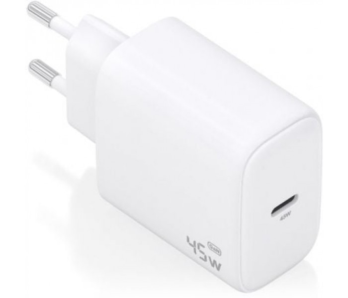 Cargador GaN USB-C 45W para cargar portátiles, móviles, cámaras y tablets etc. Diseño muy elegante, moderno y práctico.
