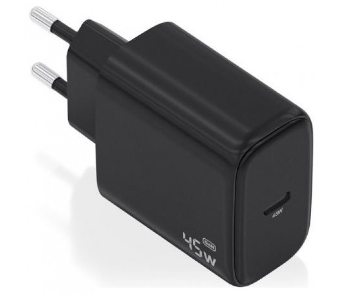 Cargador GaN USB-C 45W para cargar portátiles, móviles, cámaras y tablets etc. Diseño muy elegante, moderno y práctico.
