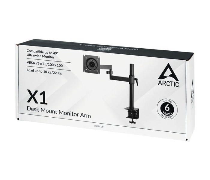 El brazo del monitor admite monitores ultra anchos con una diagonal de pantalla de ≤ 43", así como monitores 16:9 con una diagonal de ≤ 40". El monitor debe tener un soporte VESA 75 o VESA 100 y no debe exceder un peso total de 10 kg.