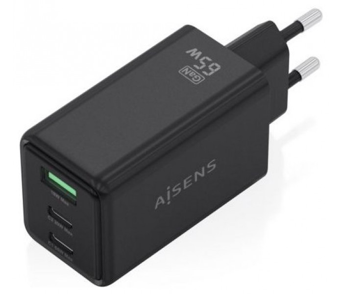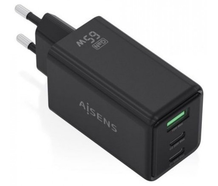 ASCH-65W3P072-W – Cargador GaN 65W, 2xUSB-C PD3.0 QC4.0, 1xUSB-A QC3.0, Negro