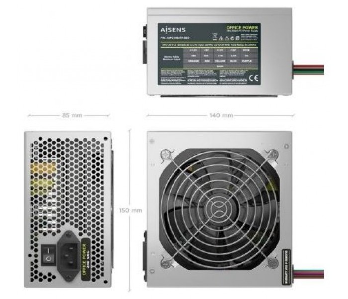 AISENS-FUENTE ALIMENTACION ATX 500W OEM, PLATA