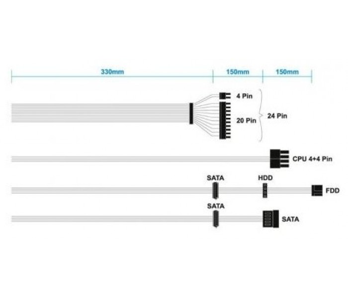 - 1 conector SATA + 1 conector Molex + 1 conector mini-Molex (tipo Floppy, 4 pines) 330+150+150mm