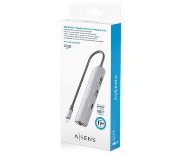 ASUC-4P039-GR – Dock USB-C a Ethernet Gigabit + HUB 1xUSB-C+2xUSB-A, Gris, 15cm