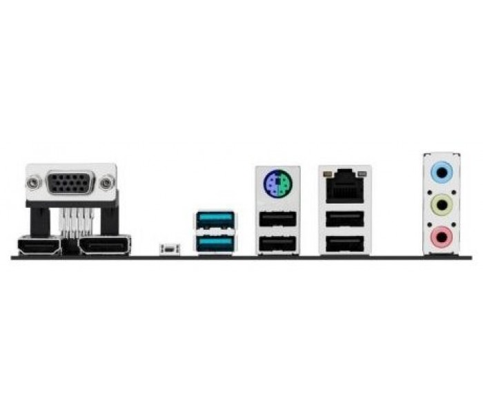 - Puertos traseros: 2 USB 10 Gbps, 4 USB 2.0, 1 DisplayPort, 1 HDMI, 1 VGA, 1 Ethernet, 3 jacks de audio, 1 PS/2 combo, 1 botón BIOS FlashBack