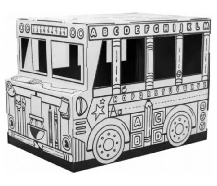 Juguete de cartón en forma de autobus escolar para pintar y jugar. Fabricado con cartón corrugado resistente y fácil de construir sin necesidad de adhesivos.Diseño interactivo, puedes abrir y cerrar puertas, ventanas y trampillas de techo. Cumple con: Artículo 18 de la Directiva sobre seguridad de los juguetes 2009/48/CE y el Reglamento sobre juguetes (seguridad) de 2011.Fabricado con cartón certificado FSC® y totalmente reciclable. Dimensiones completamente ensamblado Al 78,74 x An 114,3 x Pr 83,82 cm