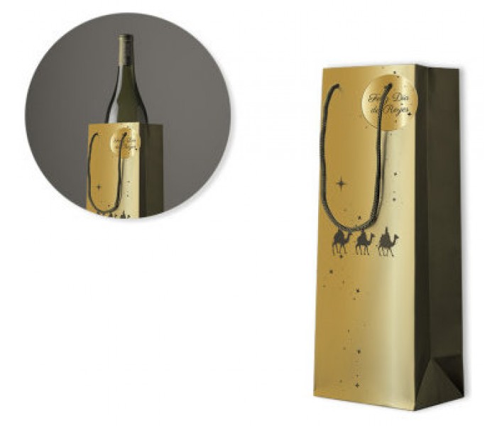 BOLSA BOTELLA DORADA REYES MAGOS (12X33,7X10 CM) BISMARK 333674 (Espera 4 dias)