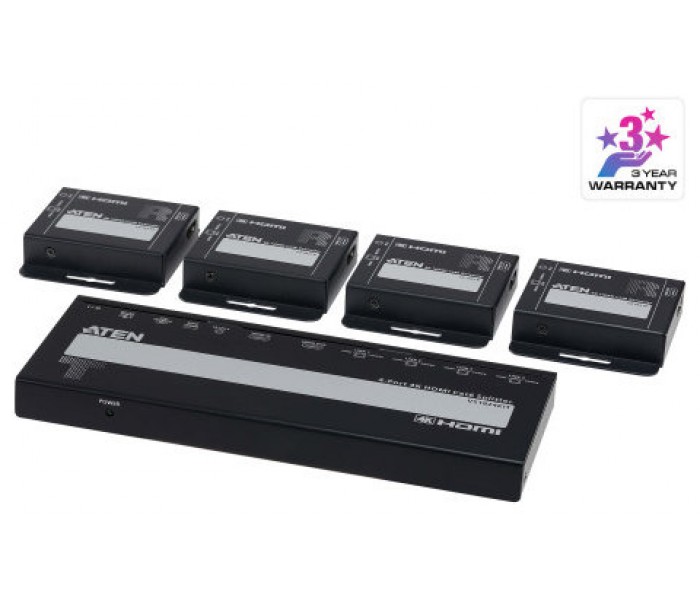 ATEN 4-PORT 4K HDMI CAT 6 SPLITTER WITH 4 RECEIVERS KIT, WITH LOCAL HDMI OUTPUT, IR RECEIVERS, AND POC (Espera 4 dias)