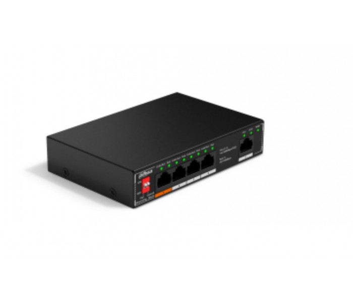 Dahua Technology PoE DH-SF1005. Tipo de interruptor: No administrado, Capa del interruptor: L2. Puertos tipo básico de conmutación RJ-45 Ethernet: Fast Ethernet (10/100), Cantidad de puertos básicos de conmutación RJ-45 Ethernet: 5. Bidireccional completo (Full duplex). Capacidad de conmutación: 1,8 Gbit/s. Estándares de red: IEEE 802.3, IEEE 802.3u, IEEE 802.3x. Voltaje de entrada DC: 48 - 57 V. Energía sobre Ethernet (PoE). Montaje de pared, Factor de forma: Montaje en pared/escritorio