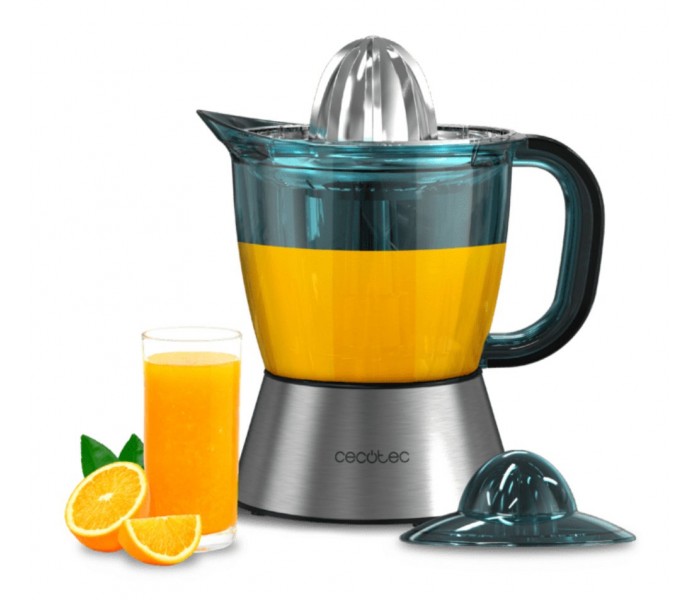 Zumos perfectos al instante.Prepara zumos deliciosos prácticamente al instante con el exprimidor eléctrico Zitra Full Steel. Aprovecha sus 60 W de potencia y su capacidad de 1 L para extraer todo el sabor de tus cítricos y preparar zumo para ti y los tuyos de forma fácil.Para todo tipo de frutas.Gracias a sus conos desmontables de diferentes tamaños, uno de plástico y el otro de acero inoxidable, podrás exprimir de forma eficaz frutas de diferentes tamaños.Saca hasta la última gota.No quedará nada en tus cítricos. El exprimidor cuenta con doble sentido de giro para aprovechar al máximo cada fruta y así extraer hasta la última gota.Presiona y disfruta.Activa el exprimidor con solo presionar el cono con la fruta y consigue zumos perfectos de la forma más cómoda y rápida.Máximo sabor y fácil limpieza.Olvídate de la pulpa y de la mezcla de sabores en tus zumos gracias a su filtro de acero inoxidable que, además, facilita la limpieza del exprimidor.Protegido ante todo.El exprimidor cuenta con una cubierta para proteger el cono, tanto contra los golpes como contra la suciedad y el polvo.Directo al lavavajillas.Deja el exprimidor como nuevo sin esfuerzo, ya que el diseño de sus piezas no eléctricas hace que sean perfectamente aptas para el lavavajillas.