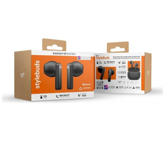 | Características | - Cancelación de ruido en el micrófono (ENC) - Duración de la batería de 25 h - Llamadas al cuartel general - Bajo profundo - Carga rápida - Baja latencia - Certificación IPX4 - Plástico reciclado (GRS) y cartón reciclado (FSC) - Conexión inteligente Contenido - Auriculares Stylebuds - Cable USB Tipo C |