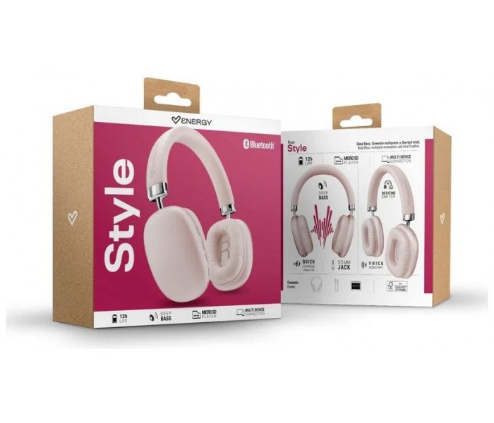 | Características | - Duración de la batería (12 h) - Graves profundos - Reproductor MP3 con tarjeta microSD - Conexión multidispositivo - Carga rápida (15 min/3 h) - Auriculares supraaurales - Bluetooth - Entrada de audio de 3,5 mm - Asistente de voz - Certificación FSC Contenido - Auriculares Style - Cable USB tipo C |