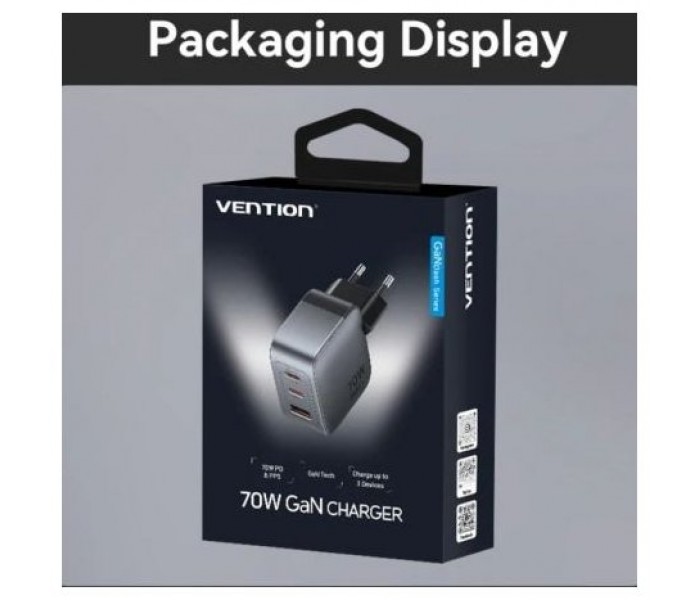 - Nombre: Cargador GaN USB de 3 puertos (C+C+A) (70W/70W/22,5W) enchufe EU gris