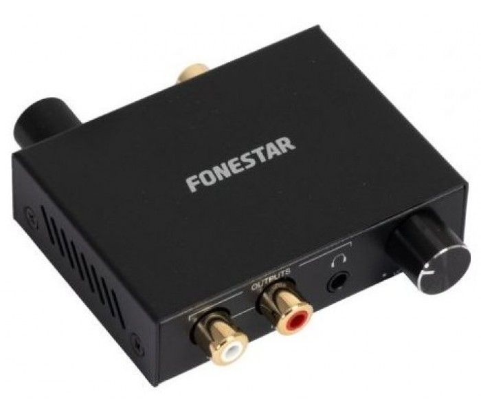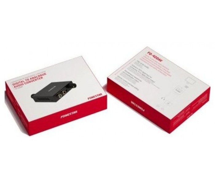 El convertidor de audio digital a analógico FO-42DAV convierte la señal de entrada de audio digital, Toslink o coaxial proveniente de un TV o reproductor digital, en señal de audio analógico para conectar unos auriculares estéreo y un amplificador externo al mismo tiempo.