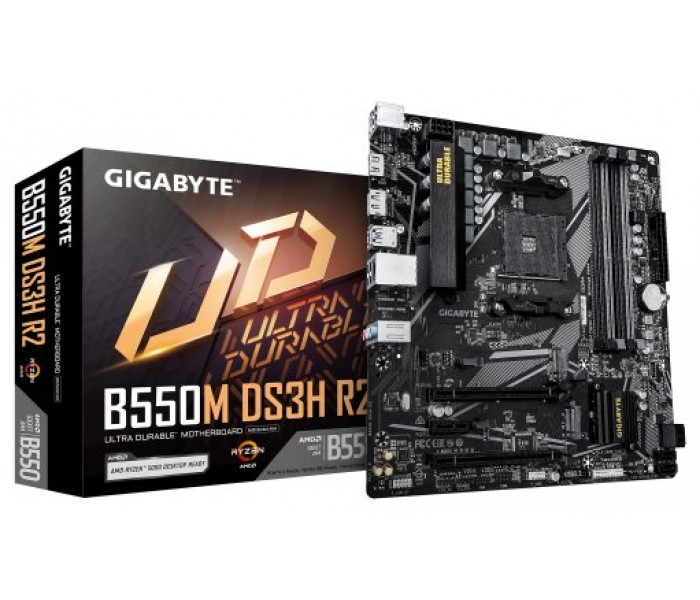 GIGABYTE B550M DS3H R2 Placa base - Procesadores AMD Ryzen 5000, VRM de 5+3 fases, hasta 4733 MHz DDR4 (O.C.), 1x M.2 PCIe 4.0 + 1x M.2 PCIe 3.0, LAN 1 GbE, USB 3.2 Gen 1 (Espera 4 dias)