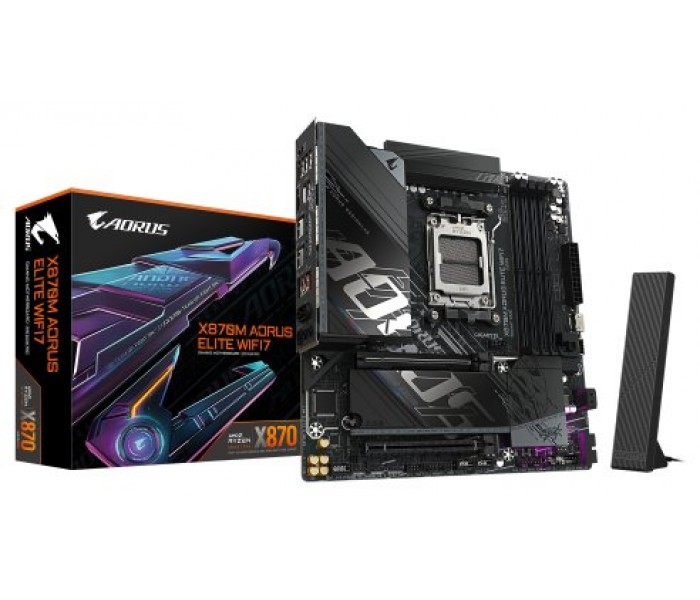 GIGABYTE X870M AORUS ELITE WIFI7 Placa Base – Compatible con procesadores AMD Ryzen 9000, VRM digital de 14+2+2 fases, hasta 8200 MHz DDR5 (OC), 1 x PCIe 5.0 + 1 x PCIe 4.0, Wi-Fi 7, LAN 2.5 GbE, USB 4 (Espera 4 dias)