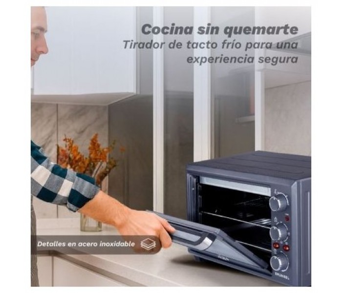 Horno eléctrico de GRUNKEL HR-28COOK, 28 L, 1600W, convección independiente, 3 modos, luz interior, 60 min, 230 °C, acero inox y tirador frío.