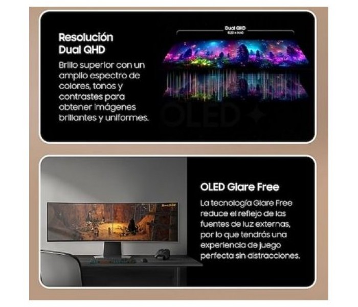 Disfruta de tus juegos al máximo gracias a la tecnología OLED . Descubre cómo tus contenidos cobran vida en una pantalla con resolución Dual QHD (5.120 x 1.440) con una nitidez y precisión inigualables.