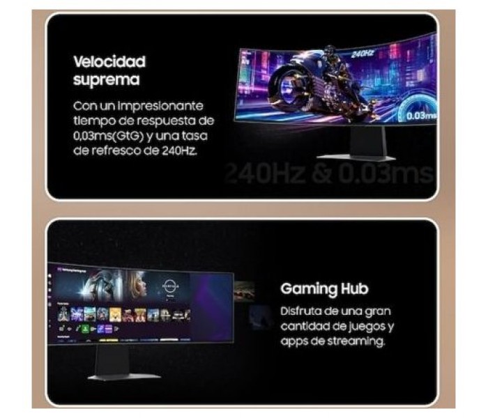 Tiempo de respuesta (GtG) casi instantáneo, de solo 0,03 ms. Las conexiones HDMI 2.1 y DisplayPort también te ayudan a ganar ventaja, ya que ofrecen tasas de refresco de 240 Hz en resolución UHD.