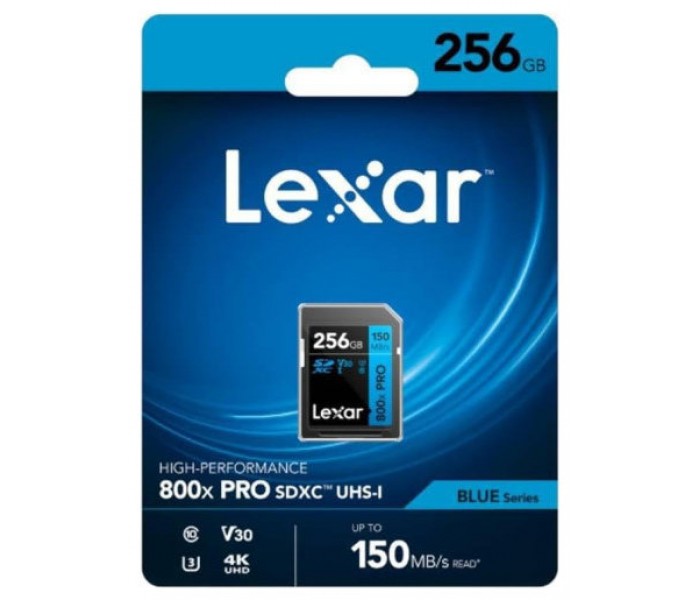 LEXAR 256GB PROFESSIONAL 800X PRO SDXC UHS-I CARDS, UP TO 150MB/S READ 45MB/S WRITE C10 V30 U3