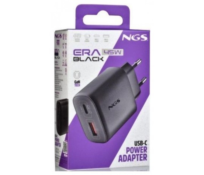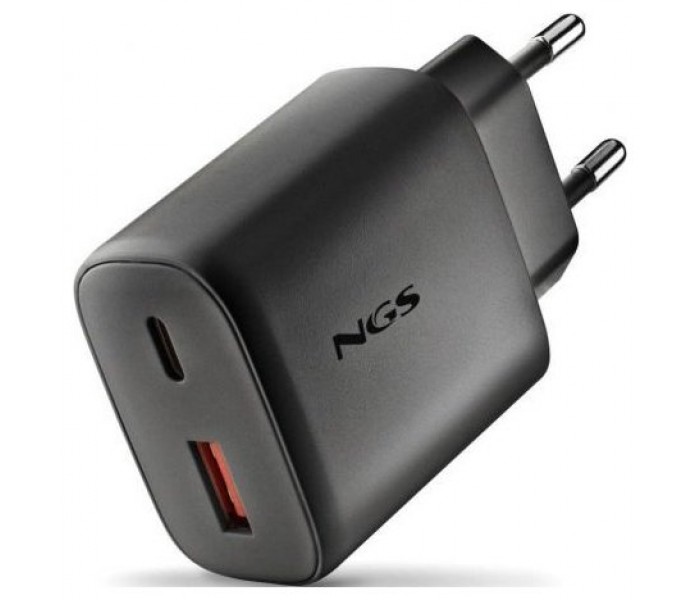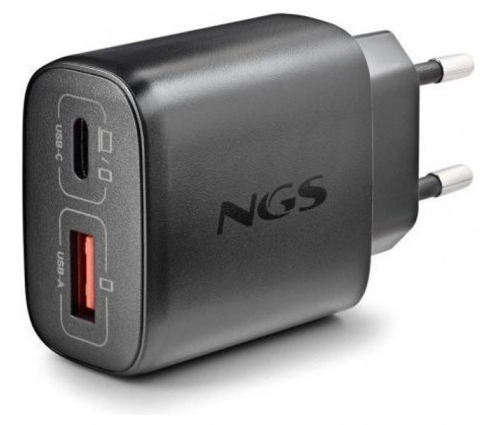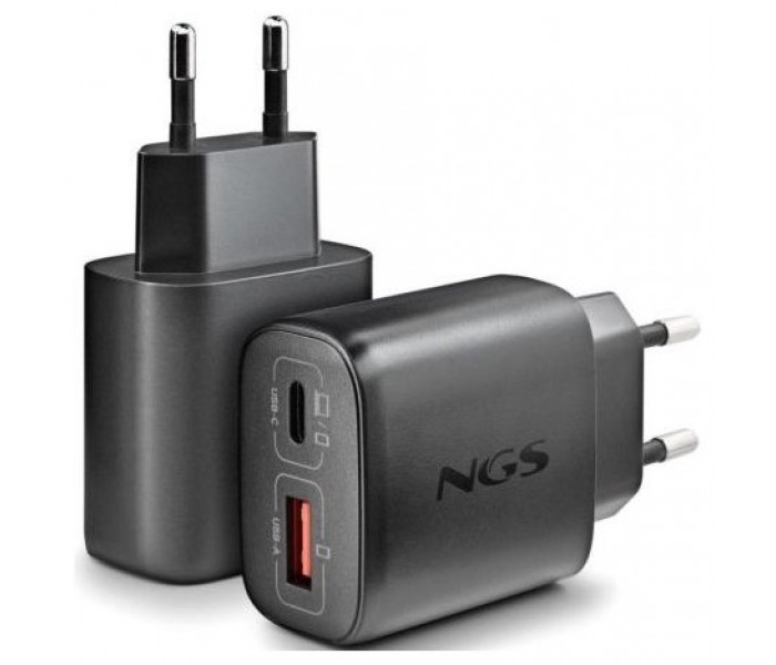 Cargador de Pared GaN NGS Era 30W/ 1xUSB Tipo-C/ 1xUSB/ 30WERA 30W BLACKCargador GaN de pared ultrarrápido de 30W con 2 Puertos: USB-C + USB-ACargador GaN de pared con una salida U..