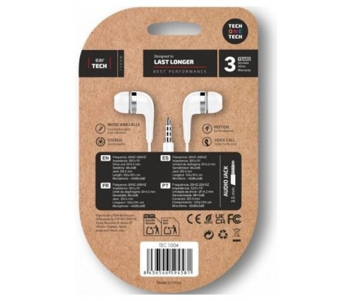 Auriculares soft earTECH ergonómicos, sonido estéreo, con micrófono, controles de volumen y tercer botón multifunción.