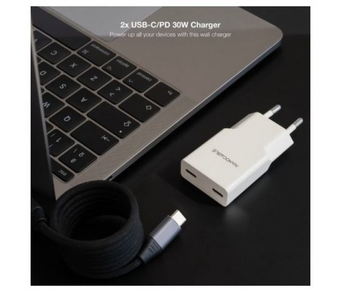 - 1 x Cargador 2xUSB-C 30W, Blanco