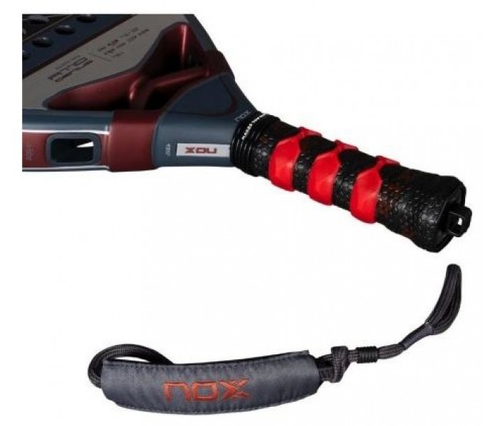 La tecnología NOX Custom Grip (certificada por Testea Padel) y Pulse System contribuyen a la absorción de las vibraciones que llegan a la mano, reduciendo la fatiga articular. Se incluye el sistema pionero de cordón de seguridad reemplazable Smartstrap. Más higiénico, más seguro y completamente personalizable.