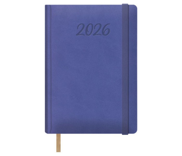 Agenda SAMBA. Cubierta realizada en polipiel con cartón almohadillado de primera calidad en portada y puntas redondeadas. Estampación del año en seco en portada. Encuadernación cosida con lomo redondo, con cabezada y cinta de registro color BEIGE, cierre de goma plana de color. Bloque interior en papel offset AHUESADO de 80 g/m2 impreso a 2 colores. Con Certificado FSC Mixto