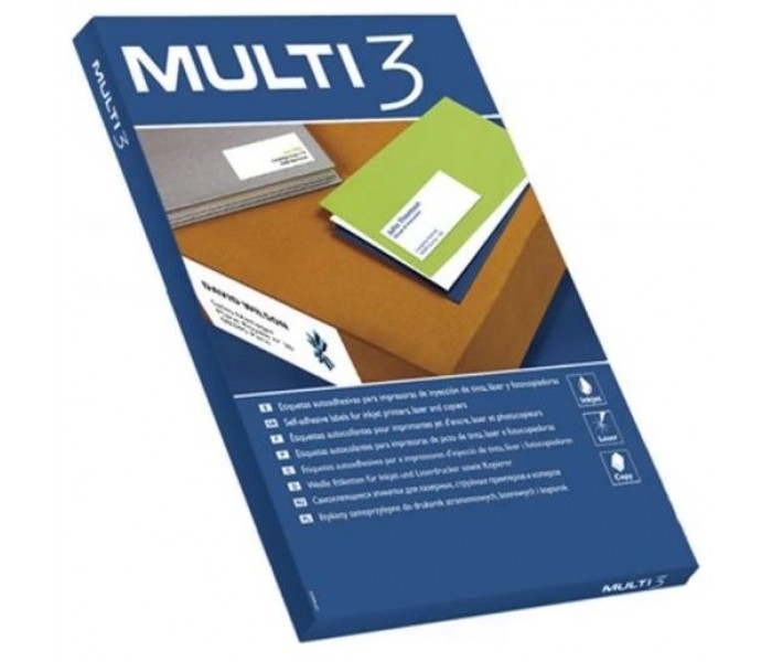 Caja de 100 hojas de etiquetas adhesivas multi3 para impresora Laser, Ink-jet o fotocopiadora.. Etiquetas adhesivas económicas.