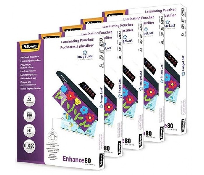 PACK 500 FUNDAS PLASTIFICAR 80 MICRAS BRILLO A4 (216X303 MM) FELLOWES 100142462 (Espera 4 dias)