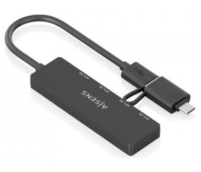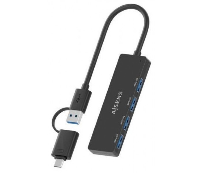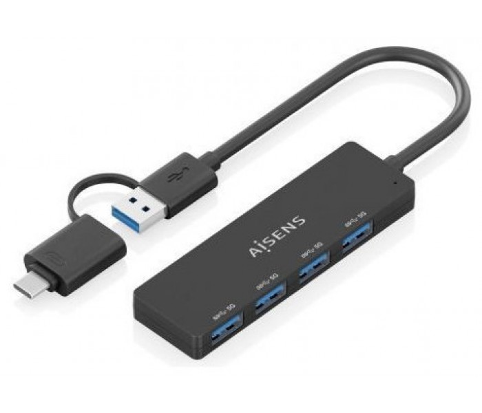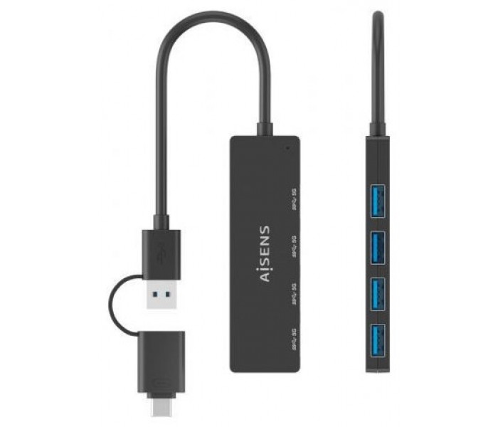 AISENS - HUB USB 3.1 USB-C USB-A, USB-C/M+USB-A/M-4xTIPO A/H, NEGRO, 15CM