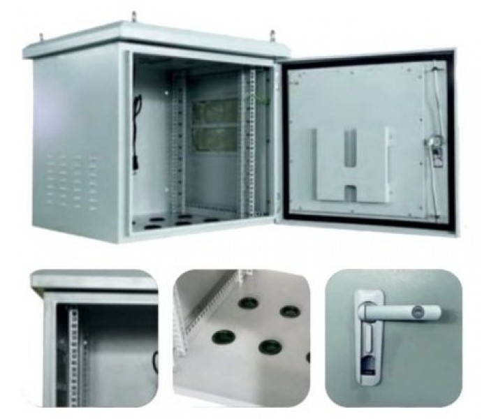 Su estructura de acero galvanizado DC51D/ SPCC (2 mm en perfiles y 1 mm en paneles) se remata con pintura epoxi‐poliéster gris RAL 7035 y un tejadillo vierteaguas que sella la lluvia.