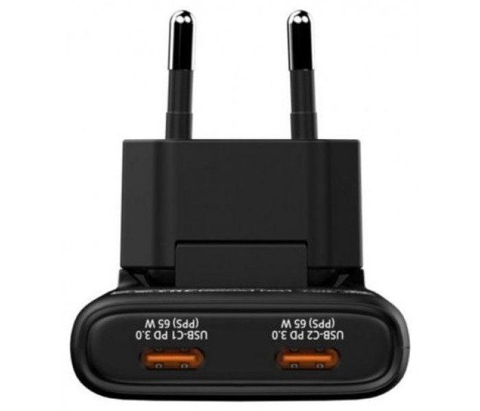 Cargador GaN Fold "n" Go Enchufe UE de 65W y 2 puertos - Negro