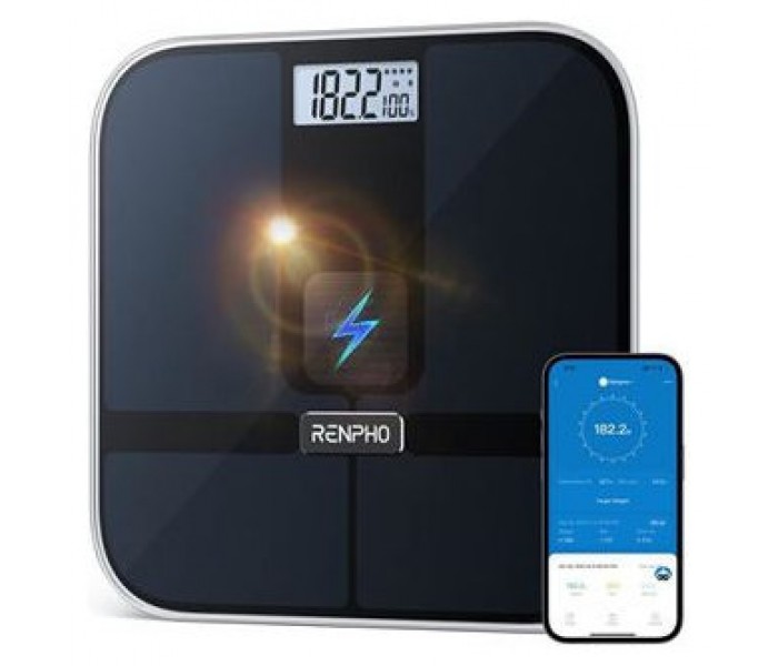 RENPHO ELIS SOLAR 2 - SMART BODY SCALE - ITO - BLE - 11X11X0.9 INCH - BLACK
