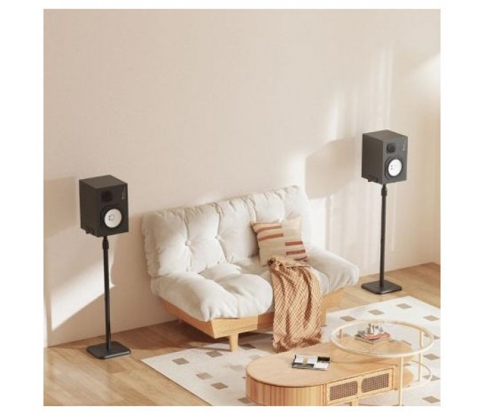 Soporte versátil de suelo para altavoces. Fabricado con acero de alta resistencia y pintado con pintura electrostática para un acabado perfecto. Destacamos su fácil instalación y ajuste. Ideal para el salón, estudios o home cinema, este soporte mantiene tus altavoces a la altura óptima, asegurando un sonido limpio, claro y preciso.