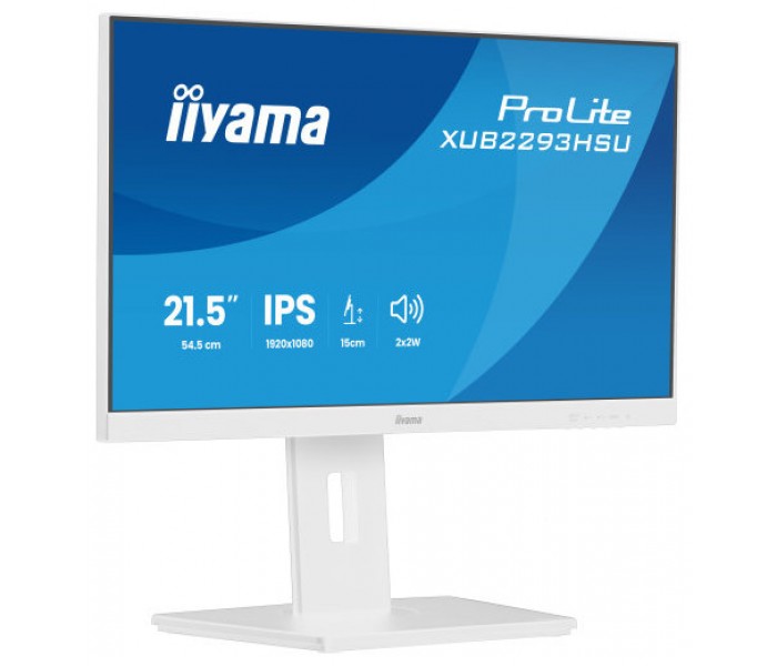 iiyama ProLite XUB2293HSU-W7. Diagonal de la pantalla: 54,6 cm (21.5"), Resolución de la pantalla: 1920 x 1080 Pixeles, Tipo HD: Full HD, Tecnología de visualización: LED, Superficie de la pantalla: Mate, Tiempo de respuesta: 1 ms, Relación de aspecto nativa: 16:9, Ángulo de visión, horizontal: 178°, Ángulo de visión, vertical: 178°. Altavoces incorporados. Conector USB incorporado, Versión de conector USB: 2.0. montaje VESA, Ajustes de altura. Color del producto: Blanco
